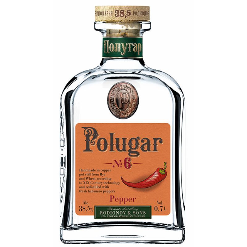 “Polugar N°6 – Pepper” è l’antico progenitore della vodka russa: un distillato di grano prodotto a partire da segale e grano, con una tripla distillazione con alambicco tradizionale discontinuo. Questa versione si caratterizza per la delicata aromatizzazione al peperoncino. In tutto il mondo, questi distillati erano conosciuti come “breadwine”, cioè “vino di pane”, per via dei caratteristici sentori di grano e pane di segale. Lo studioso Boris Rodionov, a più di un secolo dalla loro scomparsa, ha deciso di riscoprirli avviando questa pregiata produzione.